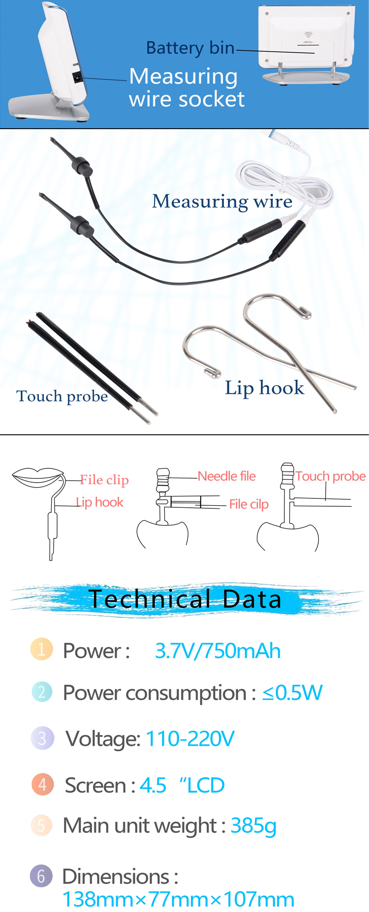 Apex Locator Dental Root-canal 4.5" Color LCD Screen